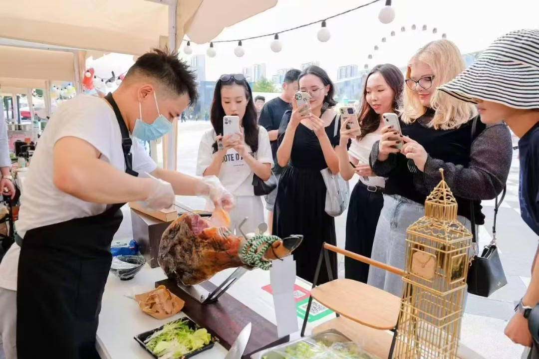 During the festival, the interactive “African Drum Circle” drew large crowds to a “hundred-person drumming party” where guests experienced exotic rhythms firsthand. Martin, an international student from Africa currently pursuing a PhD in Wuhan, gave an impromptu performance of I Love You, China, sparking loud cheers from the audience. Running in parallel was the International Gourmet Market, featuring over 40 specialty food stalls in a “global culinary journey.” Zhang Qibiao, operator of the Eastern European Kitchen booth, noted: “We’ve always been popular with young people in Wuhan. Coming to Ganlushan gives us a chance to share our brand with even more visitors.”